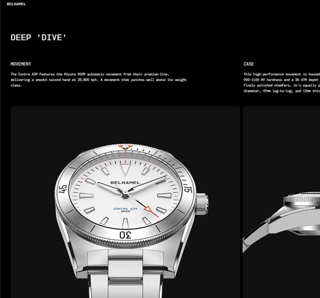 Belhamel nestaví jen hodinky, staví vizuální statement. Jejich design je založený na hře světla a precizních detailech ciferníku. Naším úkolem bylo vytvořit e-shop, který tento hmatatelný luxus přenese na displej telefonu. Díky kombinaci Shopify a Frameru jsme se nemuseli omezovat mřížkou šablony a vytvořili jsme web, který působí spíš jako interaktivní editorial než jako klasický obchod.